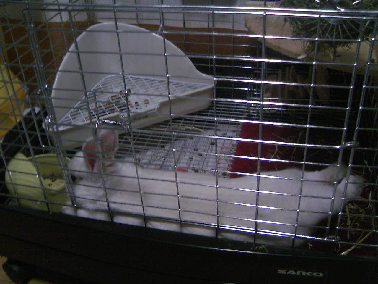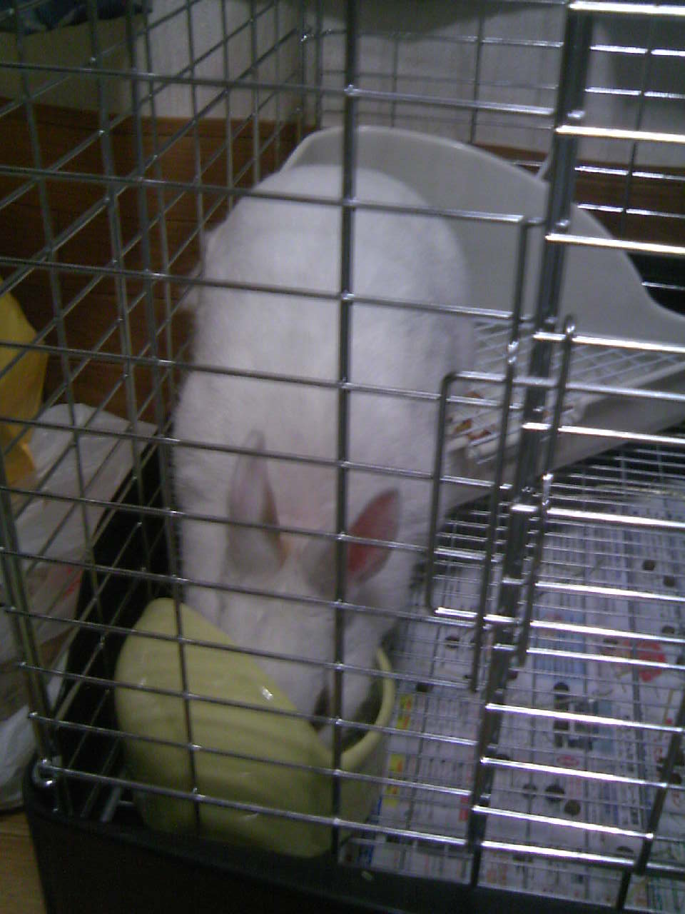 最近、小雪がケージの中にいる状態で